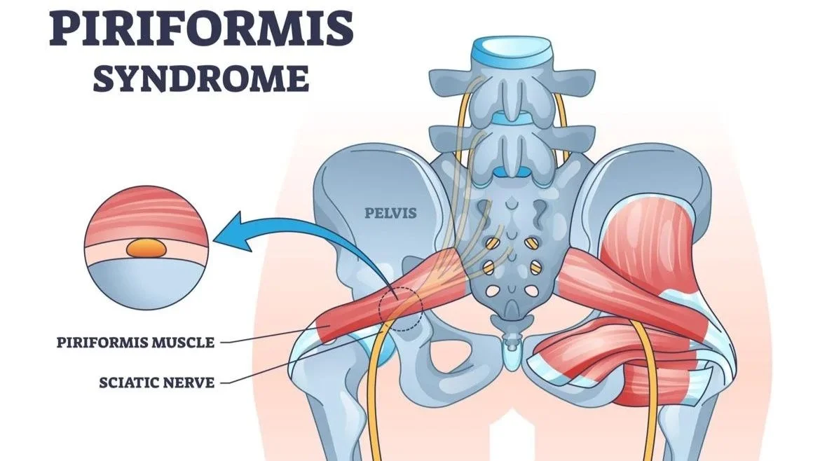 The piriformis muscle sits deep in the gluteal region near the sciatic nerve. When this muscle becomes tight or irritated, it can place pressure on the nerve and produce symptoms similar to disc-related sciatica.