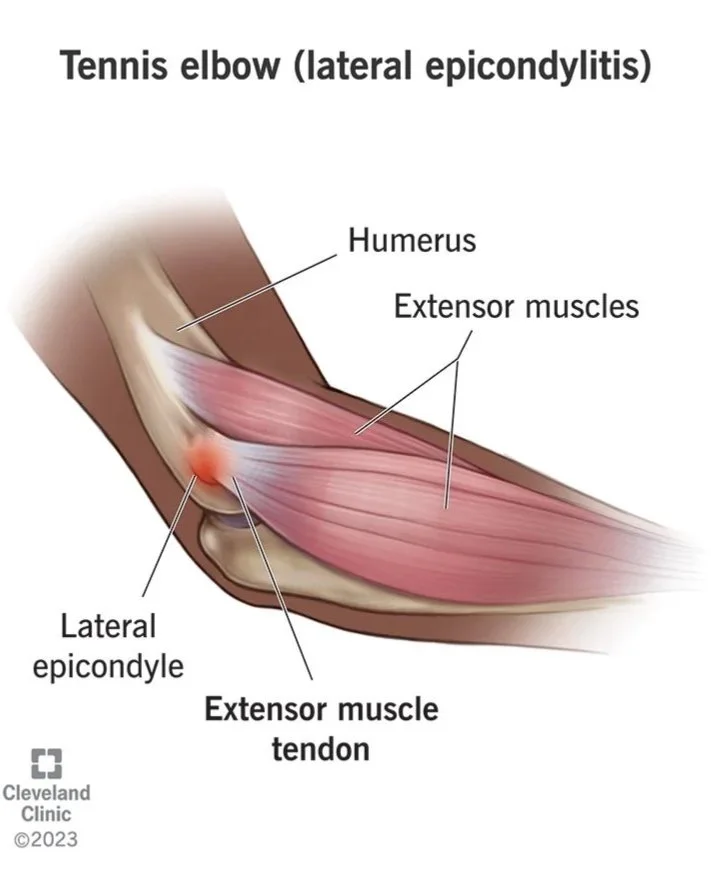 These conditions often involve irritation of the tendons where the forearm muscles attach to the elbow.